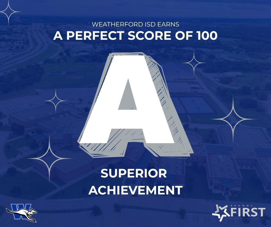 Weatherford ISD has earned a perfect score of 100 on the 2024–25 School Financial Integrity Rating System of Texas (FIRST).